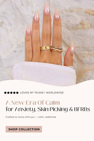 Our Anxiety Rings are designed to provide a subtle solution for those who experience symptoms of anxiety and stress such as fidgeting, skin picking, hair pulling and nail biting.