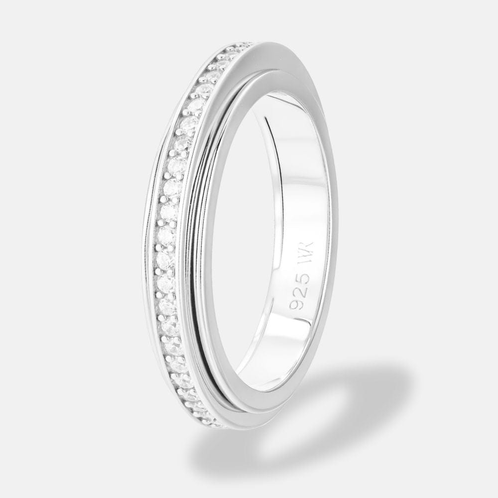Minimal yet refined, the Haven Ring embodies understated elegance. Crafted from solid 925 sterling silver and accented with a delicate pavé-set band of white crystals, this slim rotating ring is designed to ground your senses while elevating your everyday.